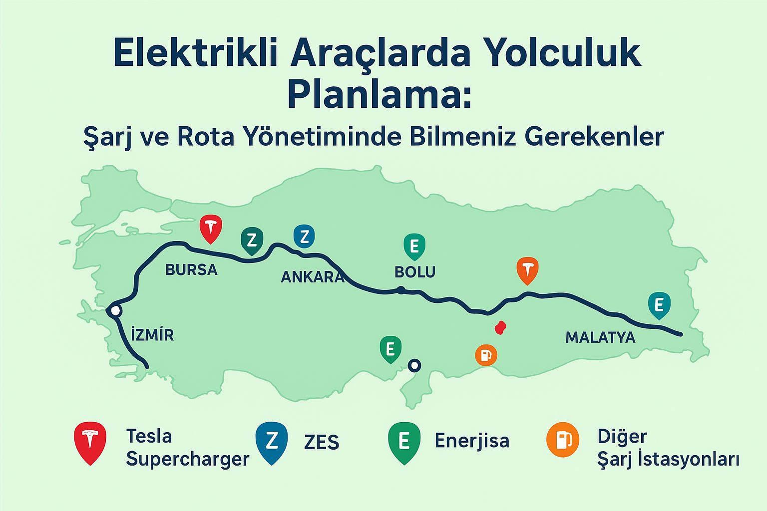 Elektrikli araçla uzun yolculuk yapmadan önce, hedef rotanızı ve yol üzerindeki şarj istasyonlarını detaylı şekilde planlamak gerekiyor. Örneğin, Türkiye’de şehirler arası seyahatlerde Tesla Supercharger, ZES, Enerjisa ve diğer özel şarj noktaları bulunuyor. Bu noktaların konumlarını ve uygun şarj türlerini önceden belirlemek, yolculuğunuzu kesintisiz ve güvenli hale getiriyor.
